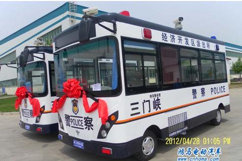 2012年4月27日下午,在河南森源鴻馬電動(dòng)汽車公司長葛生產(chǎn)基地舉行三門峽流動(dòng)警務(wù)室發(fā)車儀式。