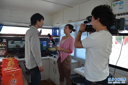 鴻馬員工向電視臺(tái)介紹產(chǎn)品功能