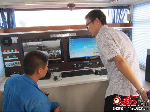 工作人員正在調(diào)試監(jiān)控系統(tǒng)和電腦