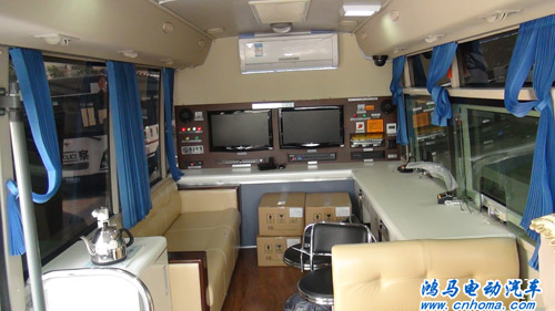 鴻馬公司設(shè)計(jì)人員說,這10臺燃油流動警務(wù)室細(xì)節(jié)設(shè)置很細(xì)致,里面沙發(fā)坐起來很舒服。側(cè)窗遮陽簾透光透氣,在幫助室內(nèi)工作人員遮擋陽光的同時,還可以欣賞到車窗外的風(fēng)景,里面各種便民設(shè)施很齊全。