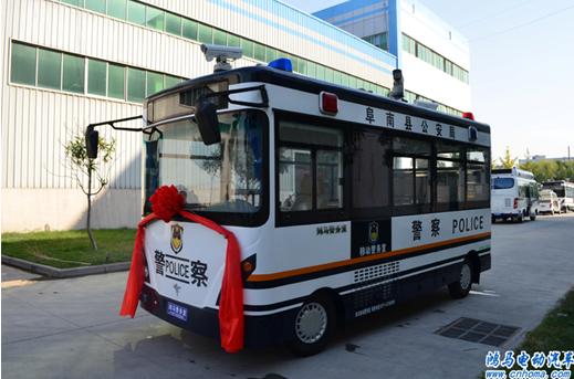 10月10日下午,在河南森源鴻馬電動汽車公司舉行安徽阜南縣鴻馬流動警務(wù)室發(fā)車儀式。