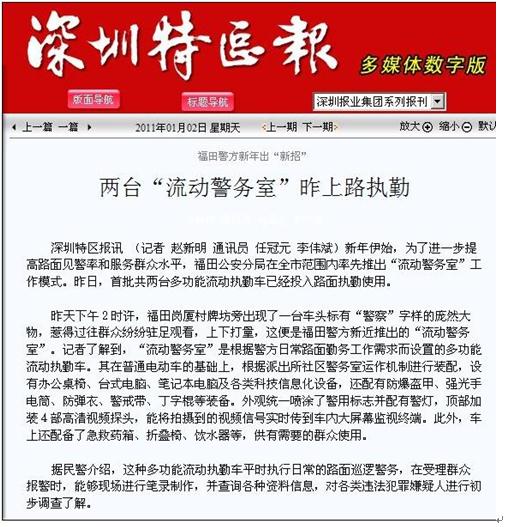 深圳新聞網(wǎng)報(bào)道“流動警務(wù)室”