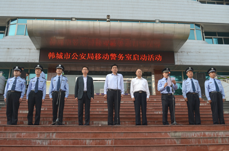 9月29日上午,陜西韓城公安局20臺(tái)鴻馬移動(dòng)警務(wù)室啟動(dòng)儀式在韓城市公安局舉行。韓城市領(lǐng)導(dǎo)冀會(huì)康、張喜出席啟動(dòng)儀式,韓城市公安局局長(zhǎng)沈軍主持。
