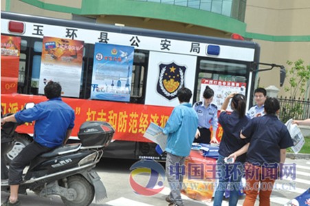 5月15日上午,沙門濱港工業(yè)園區(qū)往靈門村方向停著一輛嶄新的移動警務(wù)室,民警正在向百姓宣傳如何防范經(jīng)濟犯罪等。