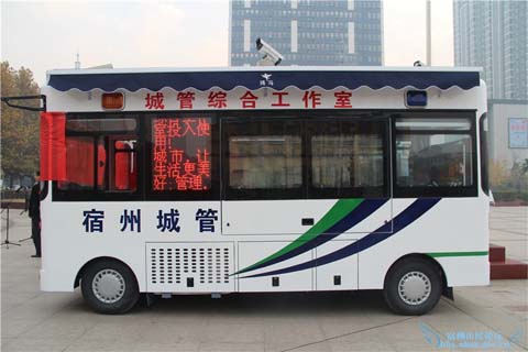 宿州市城市管理局為了進(jìn)一步提升管理水平,提高服務(wù)質(zhì)量,在宿州市市區(qū)啟用具有多種功能的城市綜合服務(wù)室。城管綜合服務(wù)室集服務(wù)、指揮、監(jiān)控、宣傳和管理與一體,具有社會宣傳、業(yè)務(wù)受理、行政執(zhí)法、綜合服務(wù)及數(shù)字化處理等高效便捷的多種功能。市城管局這次啟用的吃城市綜合工作室共有四輛,分布于市二中科技市場、市銀河市場、市華夏世貿(mào)廣場、市火車站廣場四個(gè)廣場。城管綜合工作室更具機(jī)動性、便捷性,更加貼近百姓生活,有力推動了我市城管工作向縱深發(fā)展。