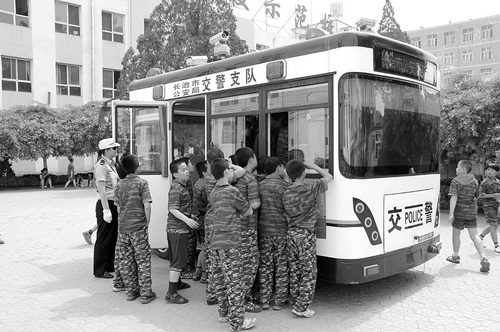 近日,長(zhǎng)治市交警支隊(duì)二大隊(duì)將“流動(dòng)警務(wù)室”開進(jìn)校園,與廣大學(xué)生零距離接觸,讓學(xué)生在了解交管工作的同時(shí)學(xué)到有用的交通安全常識(shí);顒(dòng)中,民警介紹了“流動(dòng)警務(wù)室”的各種功能,展示了喊話器、手銬、酒精檢測(cè)儀、執(zhí)法記錄儀等警用裝備,并告訴同學(xué)們遇到突發(fā)事件應(yīng)該如何自我保護(hù)、及時(shí)報(bào)警求助等。圖為同學(xué)們圍住警務(wù)室,好奇地觀察著各種警用器械。