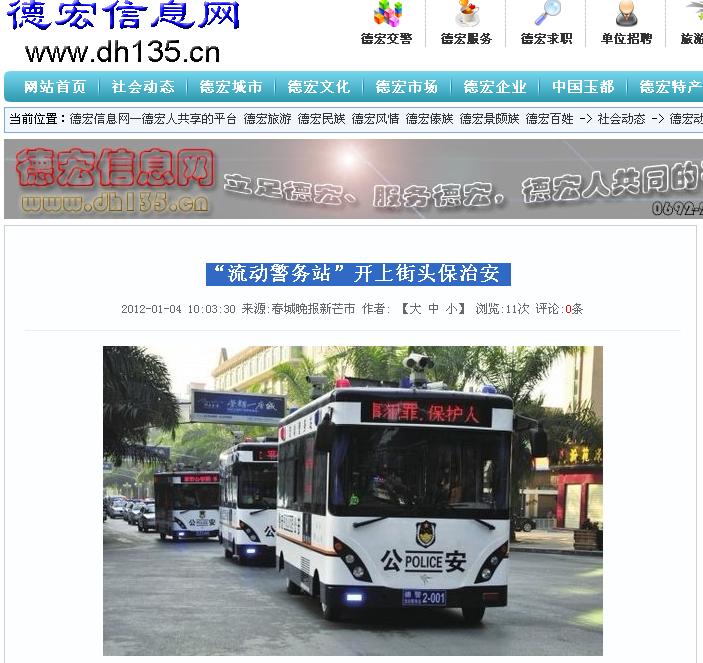 為進(jìn)一步加強(qiáng)社會(huì)治安管控力度和提升突發(fā)事件的處置水平,全面保障橋頭堡和黃金口岸建設(shè),努力打造平安、和諧、幸福的瑞麗,1月1日,集車載電腦、警用電臺(tái)、廣播設(shè)備、公安網(wǎng)等智能系統(tǒng)的“流動(dòng)警務(wù)站”在瑞麗正式上崗。據(jù)了解,此次上崗的“流動(dòng)警務(wù)站”共有3輛,分別配發(fā)至銀河派出所、勐卯邊防派出所、國(guó)門派出所。