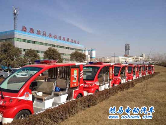 2012年2月18日上午,在鴻馬電動(dòng)汽車公司內(nèi)舉行鄭州中原區(qū)電動(dòng)消防巡邏車發(fā)車儀式,十臺(tái)消防巡邏車在鴻馬電動(dòng)汽車公司廣場(chǎng)前像要接受檢閱的士兵一樣一字排開,整裝待發(fā)即將前往鄭州中原區(qū)執(zhí)行巡邏任務(wù)。