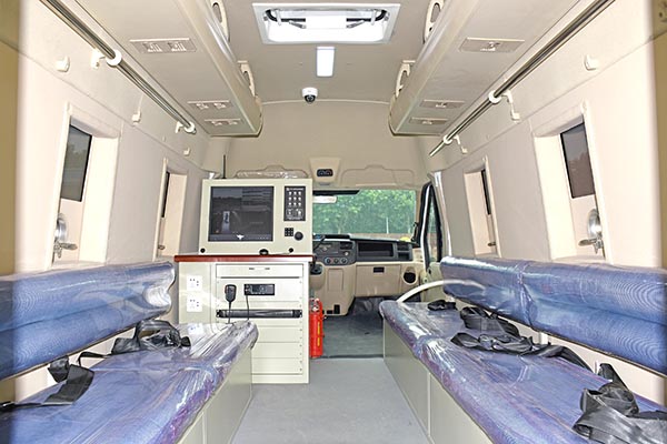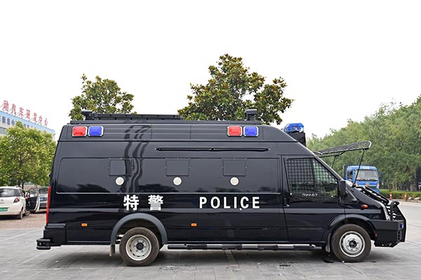 該型運兵車車身具有防彈功能,車頂配備戰(zhàn)術(shù)爬梯方便特警處理高處沖突;車身兩側(cè)安裝防掀車鋸齒,保護車內(nèi)警員不受外部傷害;左右兩側(cè)配備拉手、踏杠方便警員外部巡邏;以解決警力、警械輸送為主要目的,同時配備圖像監(jiān)控和傳輸功能可將現(xiàn)在情況及時傳輸?shù)街笓]中心,可滿足特警對運兵車輛處理應(yīng)急事故的基本需求。